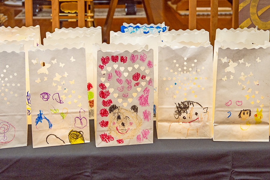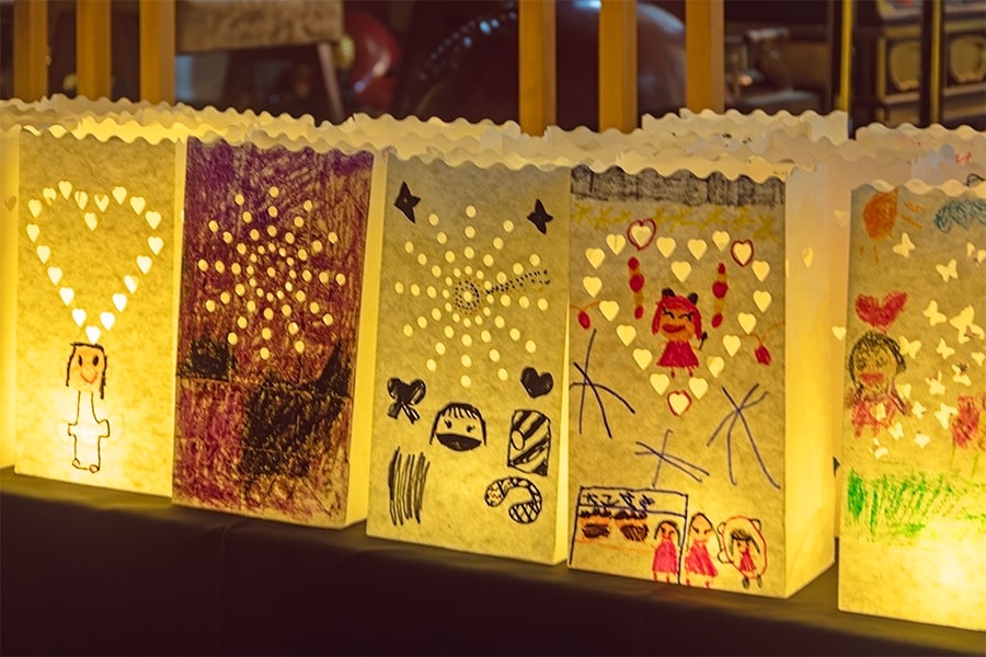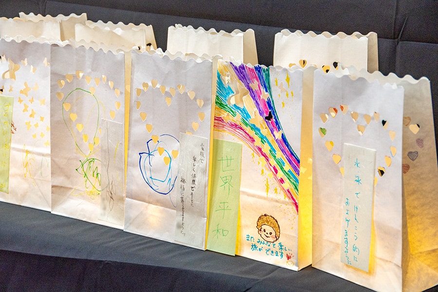 受付で紙袋ランタンと短冊、LEDキャンドルをお配りし自由に装飾をしてもらいました。