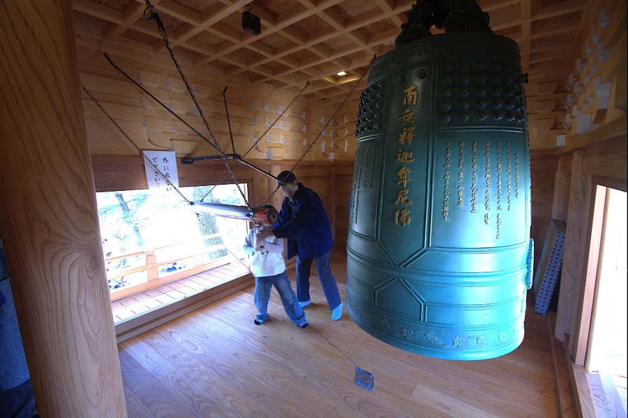 \昨年完成!二階建ての鐘楼門で「除夜の鐘」をつこう/