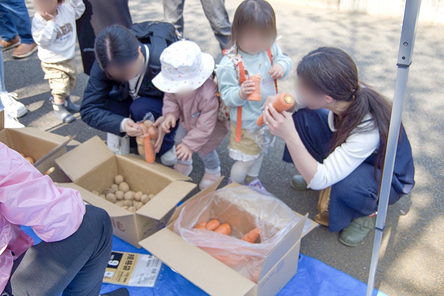 ゲームクリアで参加できる野菜詰め放題は、毎回大好評で皆さま工夫して沢山の野菜をお持ち帰りいただいています。
