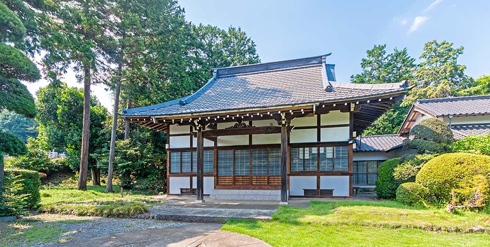 常円寺は「長谷山 香花院」と号した日高市馬引沢 にある寺院です。 創建時期は諸説あり、そのうちの一つでは元和3 年 (1617)に病没した酒依清左衛門信興(武田信玄の 家臣板垣信形の孫)を開基として、庭庵徹が開山した といわれています。