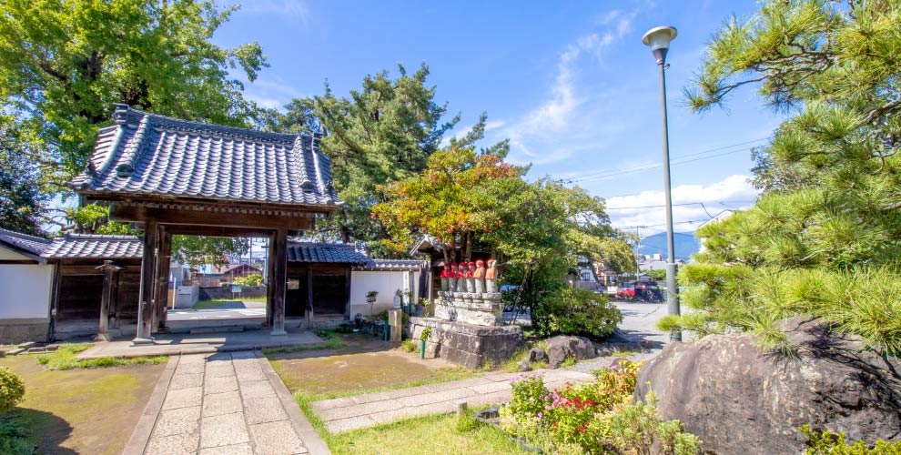 沼津駅よりバスで「霊山寺バス停」下車徒歩1分。沼津駅から車で7分。